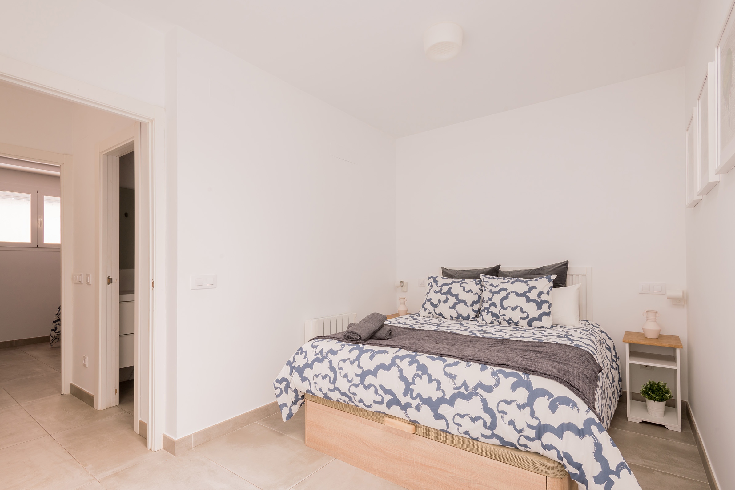 The apartment features two bedrooms, two full bathrooms, and a bright living-dining area with a sofa bed, dining table and Smart TV, as well as a fully equipped kitchen that includes a dishwasher for added convenience. It also offers heating, air conditioning and high-speed Wi-Fi. Its street-level entrance makes arrival especially convenient if you are traveling with children or carrying large luggage.