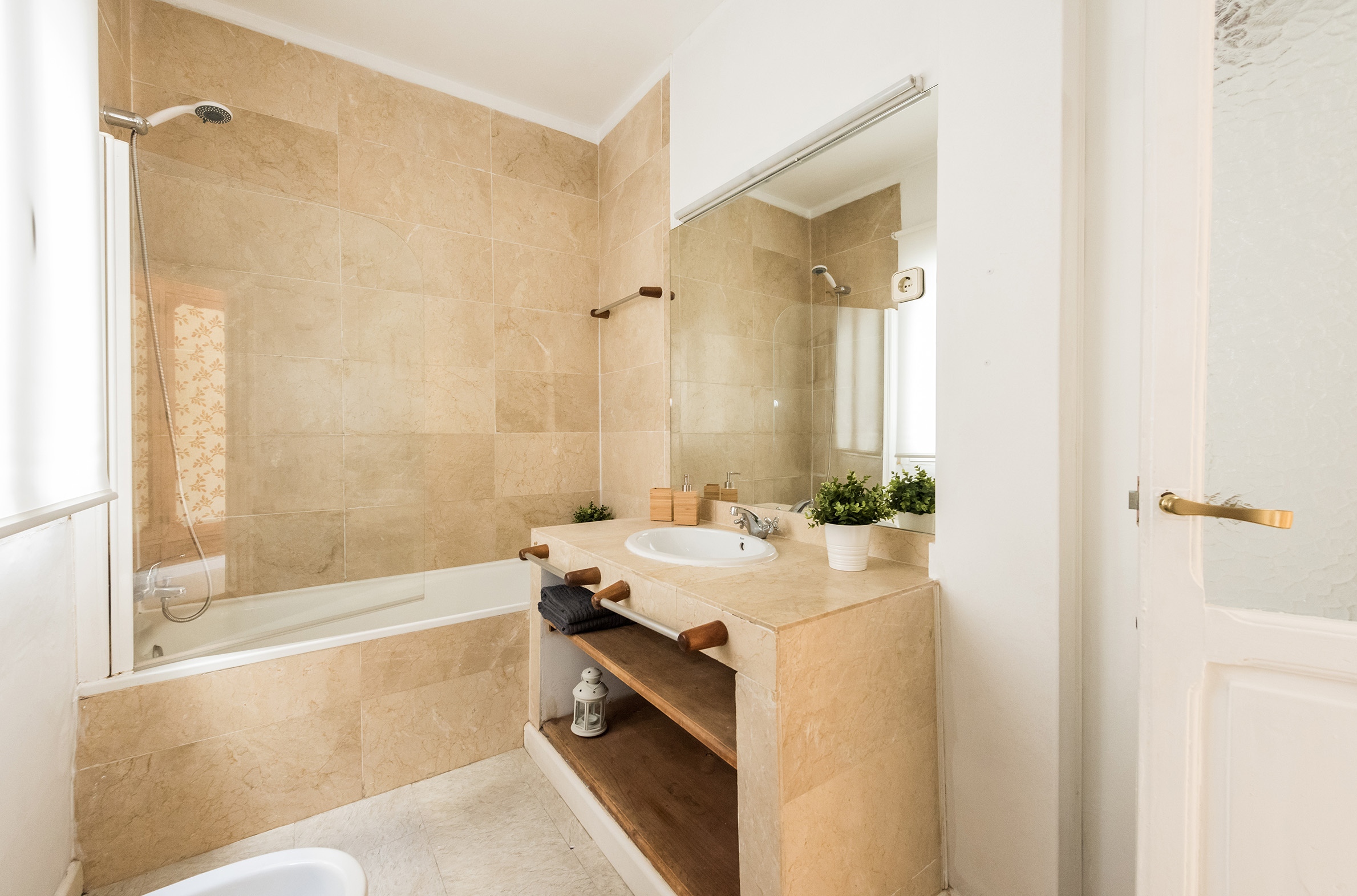 With capacity for up to 5 guests, the apartment offers a bright, elegant space perfectly located to experience the most authentic side of the historic center. The spacious living-dining area is ideal for relaxing after exploring the city, and the kitchen includes everything you need for your meals.